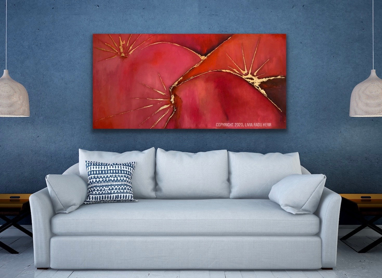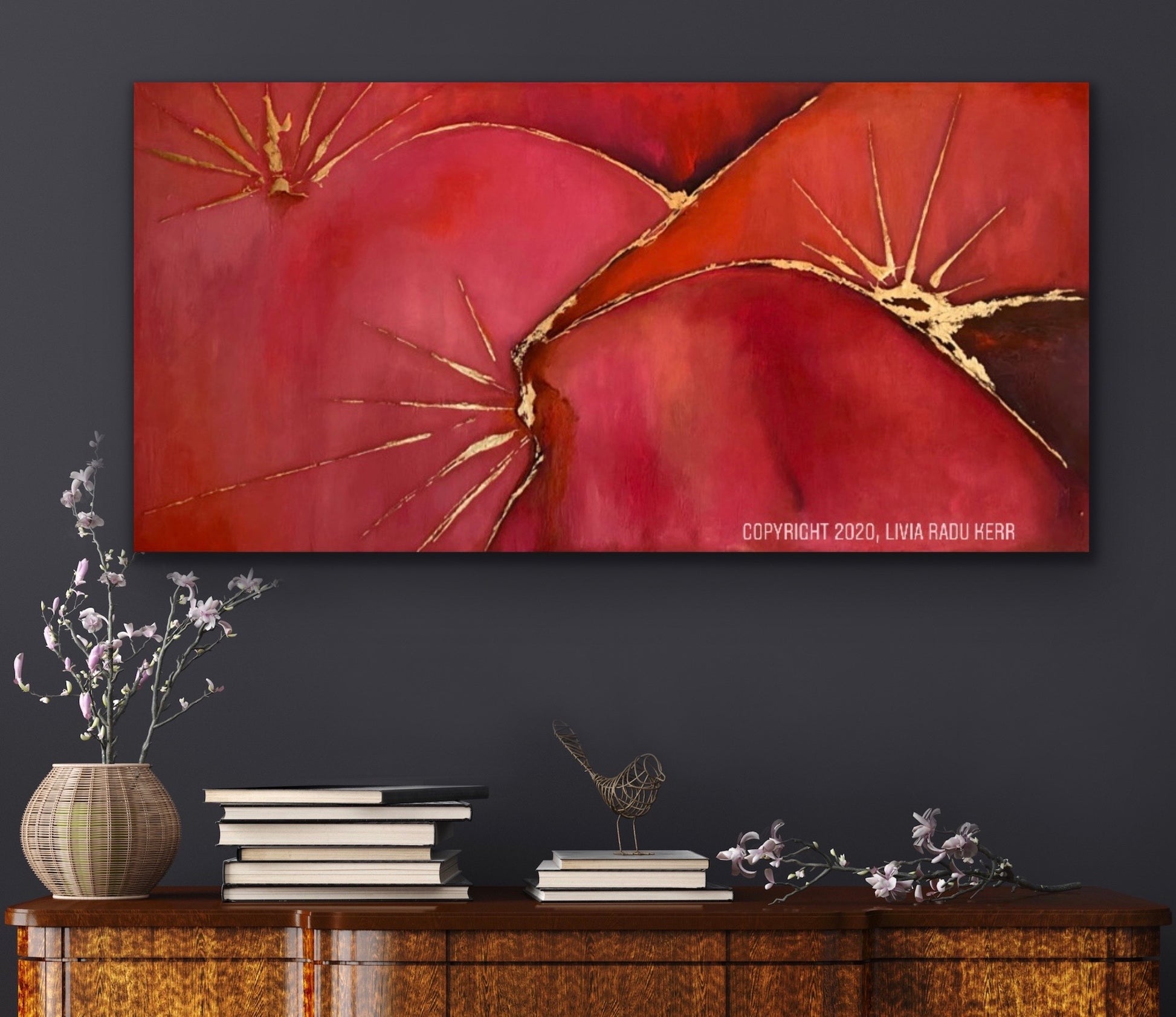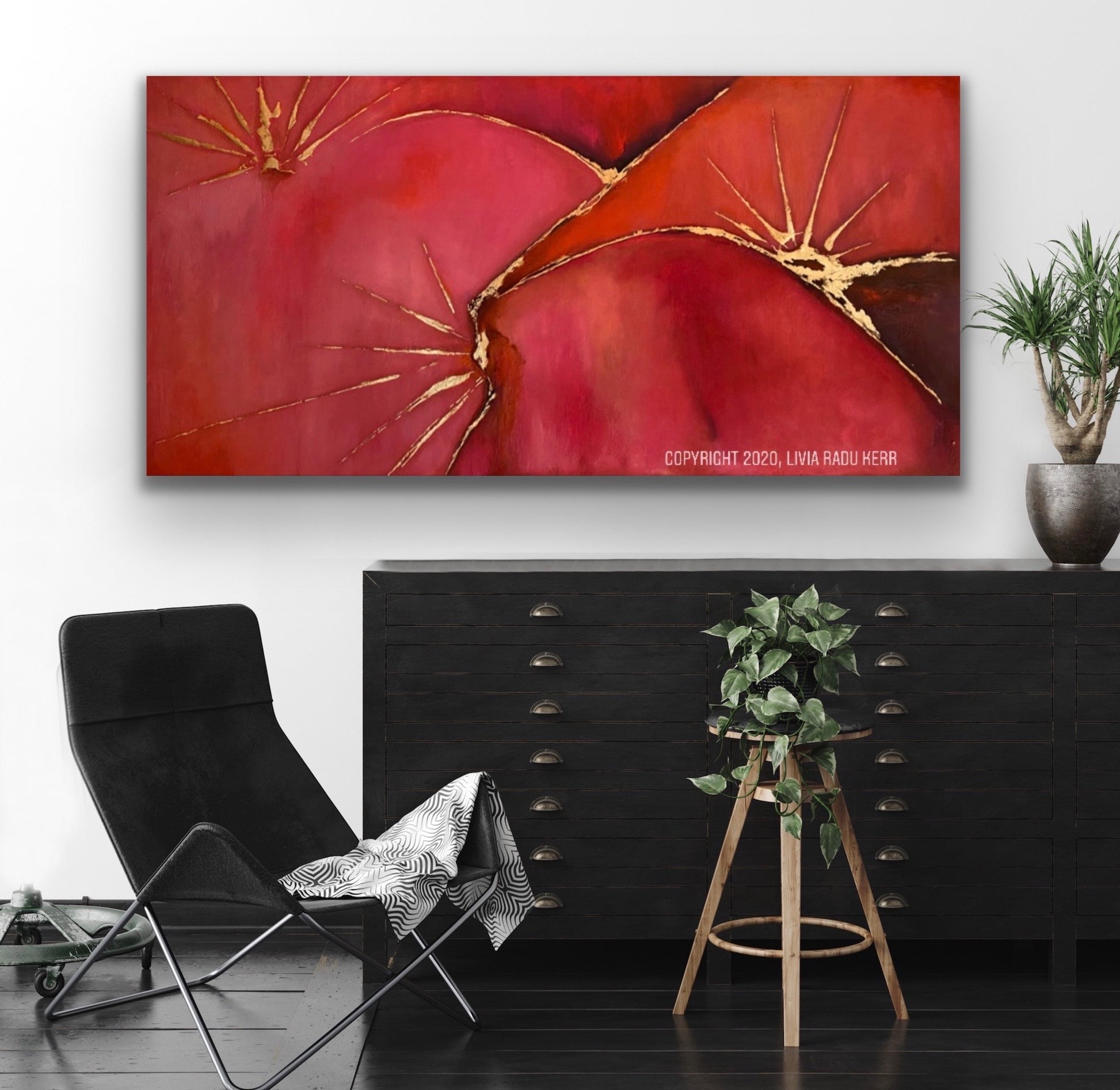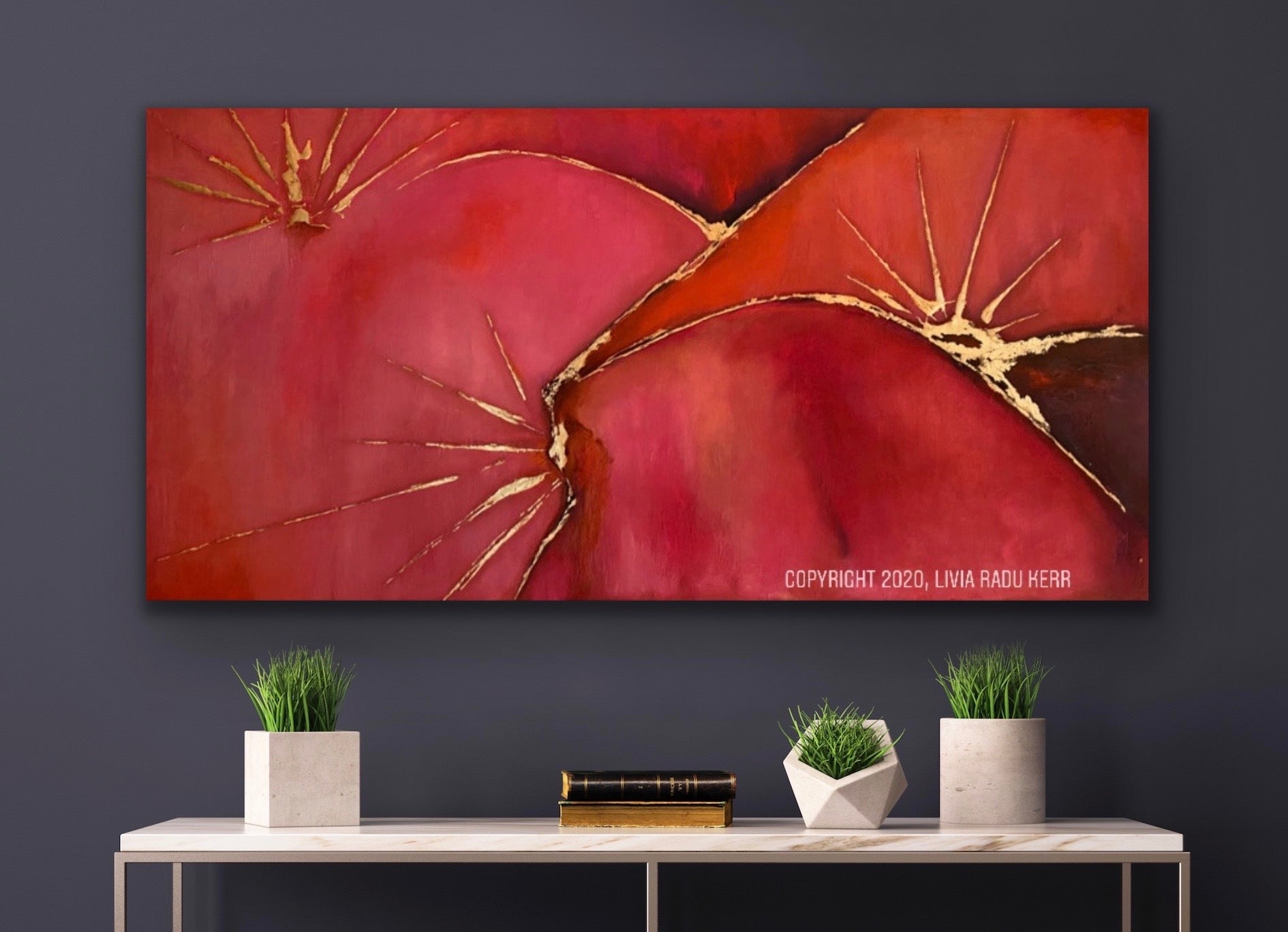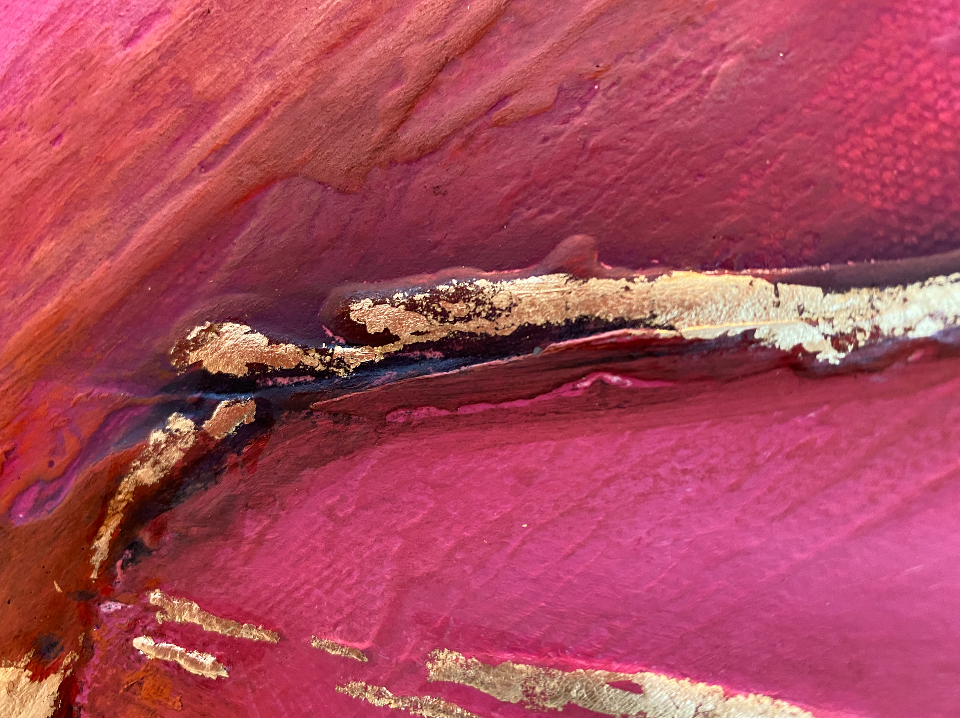 Oil textured painting on stretched canvas with metallic gold foil add ons.